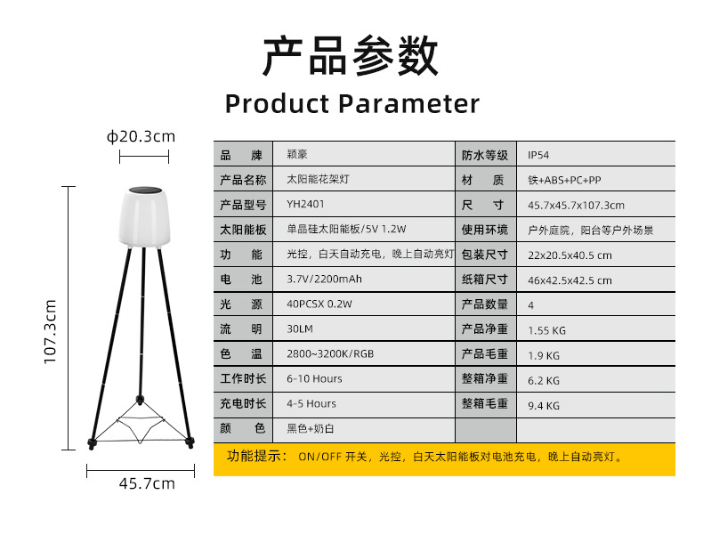 中山市颖豪太阳能科技有限公司是一家集研发、销售和服务为一体的创新型企业,专业生产太阳能LED户外装饰照明产品和LED室内家居照明系列产品。 产品范围 产品主要包括:太阳能LED路灯、太阳能LED庭院灯、太阳能LED景观灯、太阳能LED草坪灯、太阳能LED射灯、太阳能LED壁灯、太阳能LED柱头灯、太阳能移动电源、太阳能LED灯串、太阳能感应灯、LED台灯、LED吸顶灯、LED灯杯、LED筒灯、LED水晶灯等系列装饰照明产品。 研发能力 公司拥有一批经验丰富的研发技术人员,其中拥有6年太阳能LED行业工作经验的电子工程师2名;4年工作经验的开发工程师3名;测试工程师1名;不断致力于太阳能LED应用产品的研发,推出更加符合市场需求的环保、绿色、节能产品.公司研发团队每年定期参加广交会和香港展,了解太阳能产品最新的行业趋势,使我们的产品更加贴近市场,更好地服务于广大客户,我们平均每季度推出5-10款新产品,并拥有自已的专利。公司每季定期向广大客户推举新产品,且提供OEM和ODM服务。 质量控制 (ISO 9001 标准) 公司致力于技术创新与产品质量管理同行,不断完善和革新品质管控方法,对产品工艺进行不断地改进和精制,使颖豪的产品更具生命力。 发货之前,我们相关工作人员会协同OQC对货物进行检验,以确保客户对我们产品的质量100%满意。 质量认证 为更好地服务于全球各个国家的广大客户,我们的产品取得CE、RoHS、ETL等国际认证,为出口提供了有力的保障。 服务 “顾客至上、品质第一、服务贴心、创新优先”是我们的宗旨,不管我们做什么,我们将始终遵循这一使命,使我们的每个客户和合作伙伴满意。我们会不定期地为广大的客户推出最新款的太阳能LED照明产品。产品种类齐全,力争为广大海内外客户提供更多物美价廉的产品,客户有了更多选择的机会,节省精力和成本。我们尊敬且珍爱每一个客户,非常期待和欢迎客户的宝贵意见和建议,同时也非常欢迎国内外的朋友来我司参观指导。