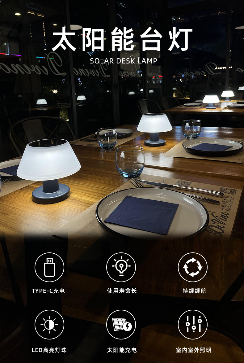 户外清吧餐吧氛围太阳能小夜灯 床头礼品充电酒吧桌面太阳能台灯