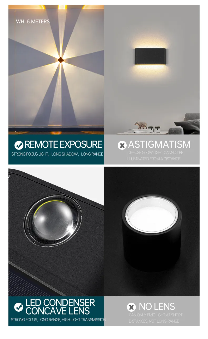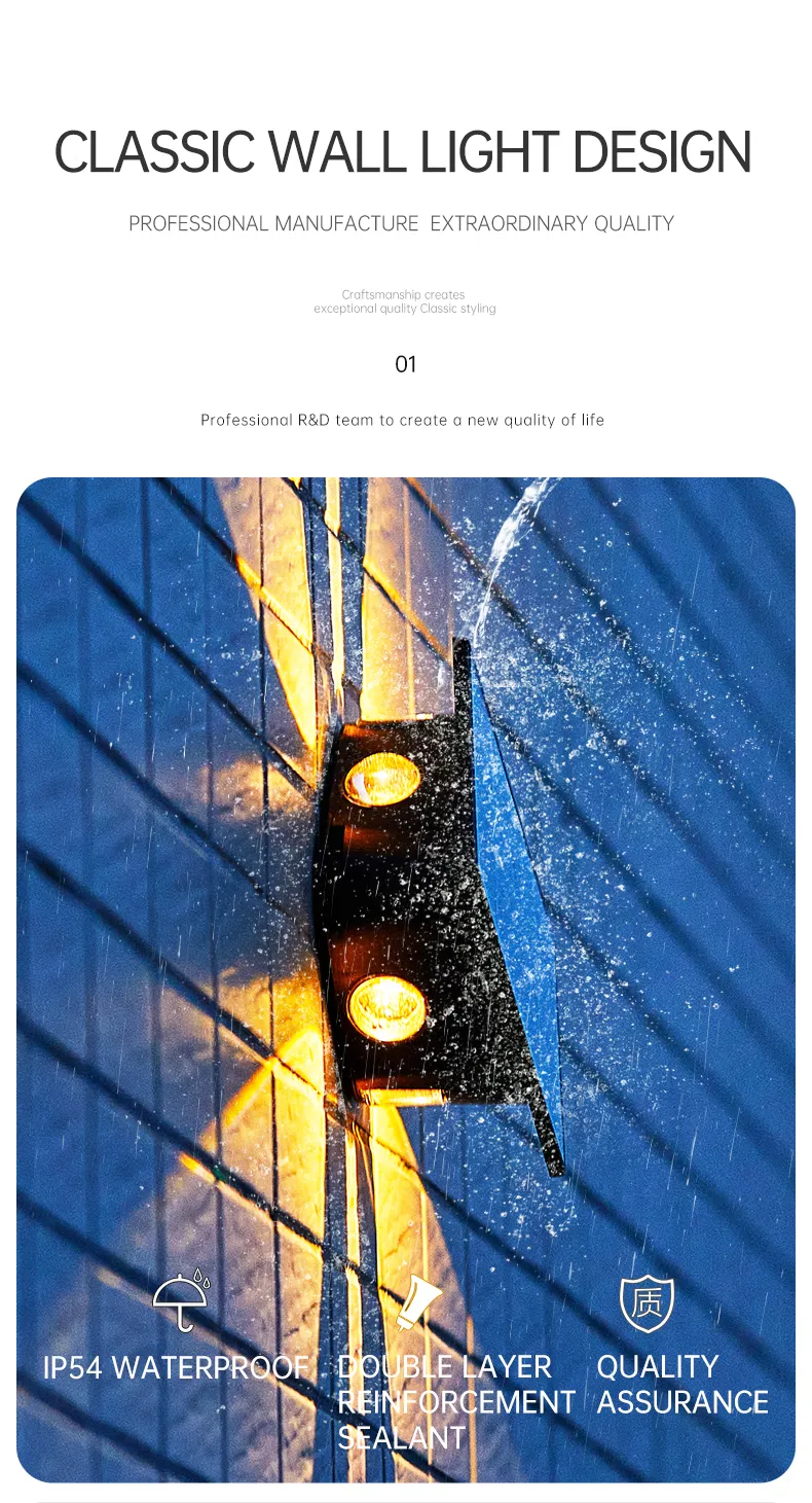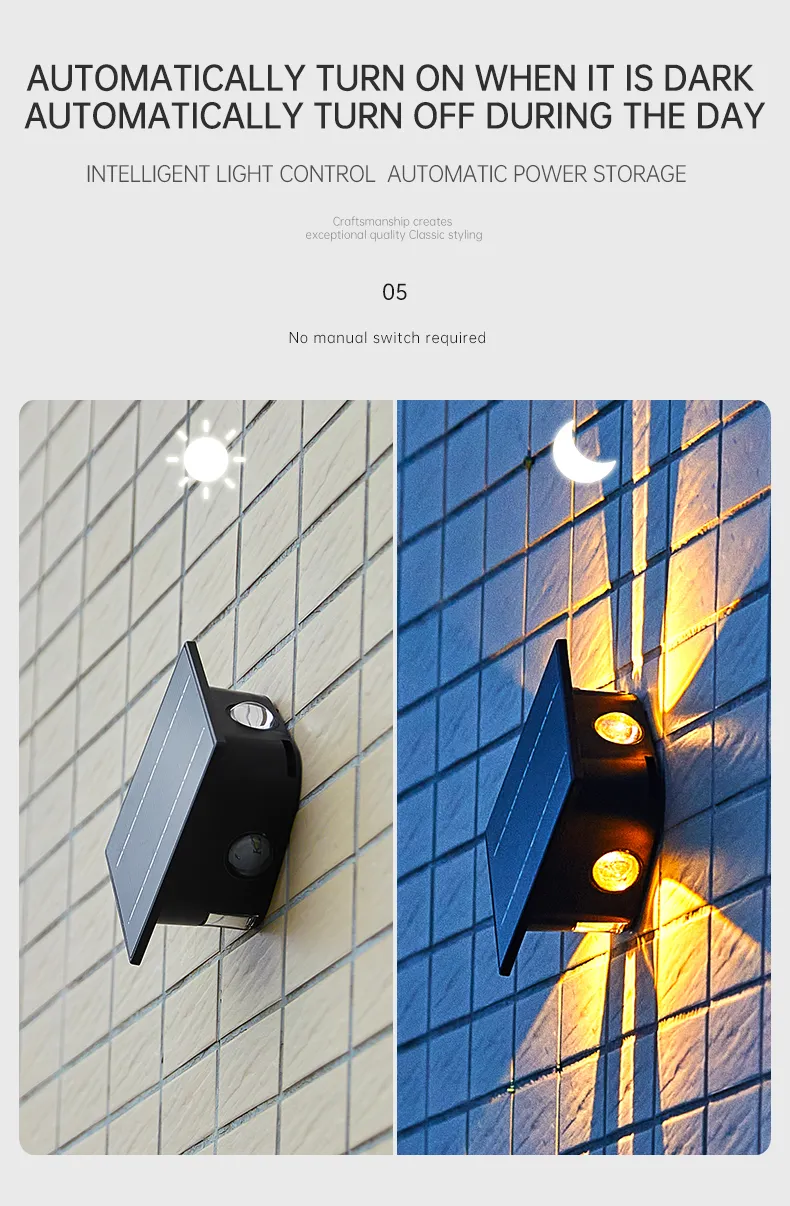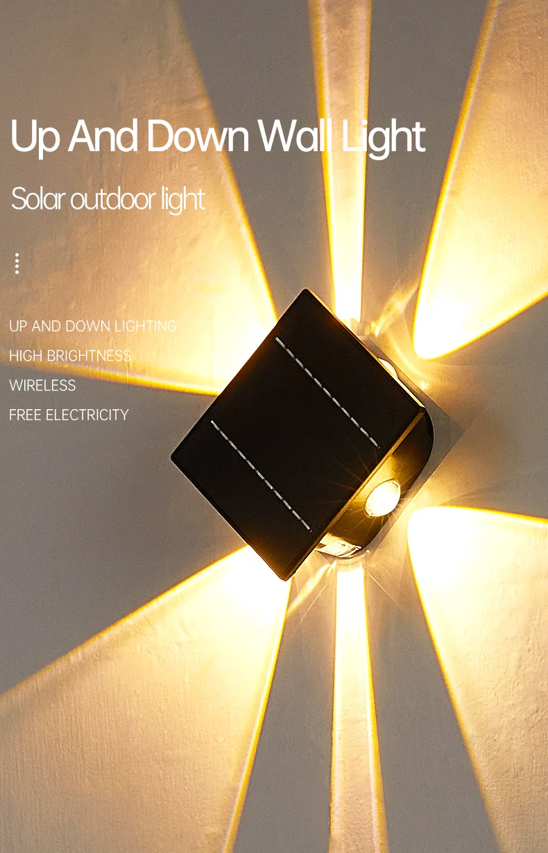 太阳能壁灯户外洗墙灯室外围墙防水花园外墙灯上下发光射灯