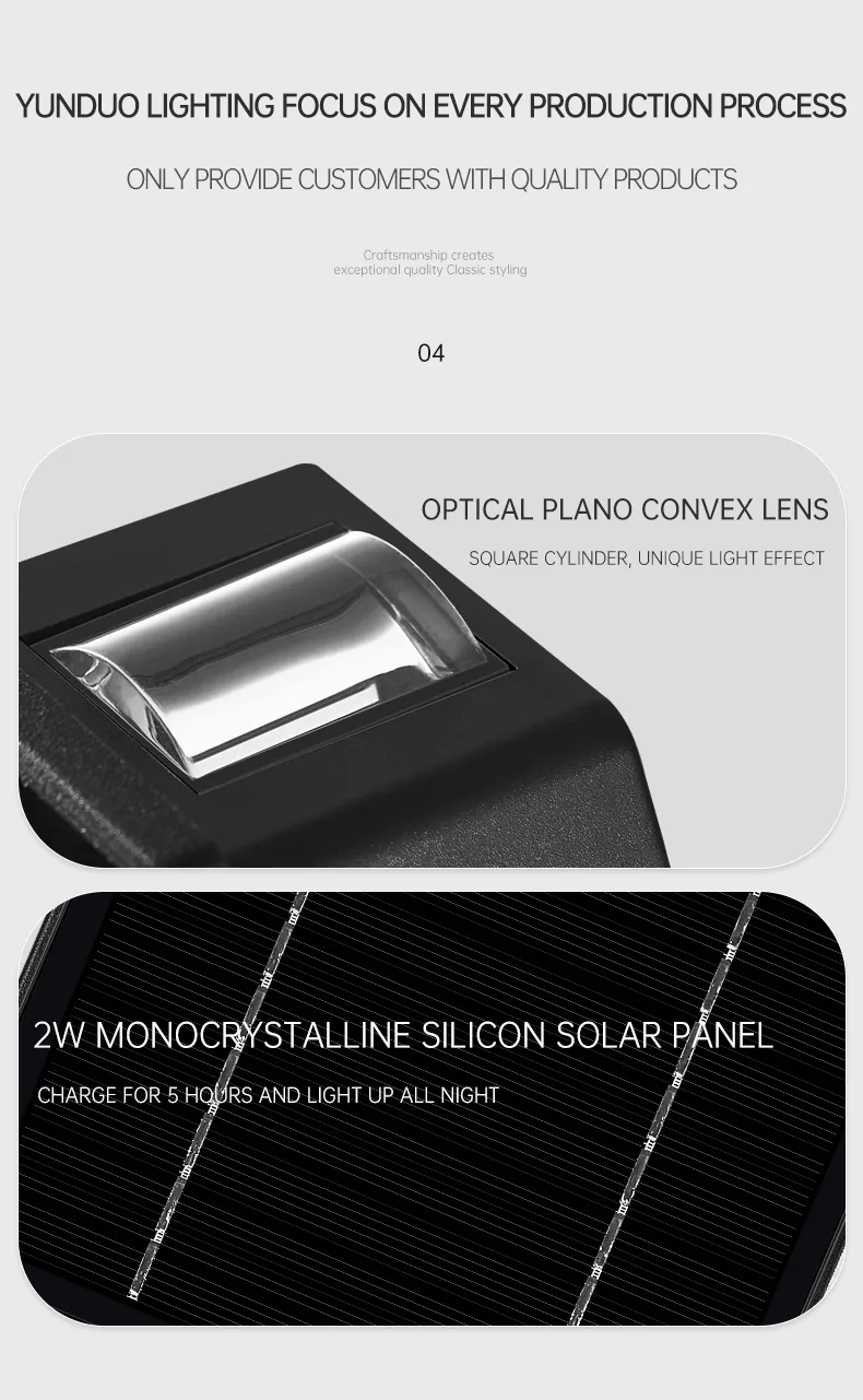 中山市云朵照明电器厂,坐落于中国灯饰之都---古镇,我司成立与2011年,是一家以太阳能户外照明研发制造为主的高新技术企业。八年的风雨沧桑,八年的征程跋涉,八年的峥嵘岁月,八年铸就辉煌;八年专注太阳能户外照明,使得我司在这一领域取得辉煌的成就。目前主要产品有: 太阳能草坪灯,太阳能柱头灯,太阳能壁灯,太阳能投光灯 和 太阳能路灯等系列户外照明产品;在户外太阳能照明领域品类齐全,款式众多,有多款自主研发的高科技产品。 我司设备齐全,拥有五千多平方米的生产场地,多条装配流水线,公司技术实力雄厚,设计人员具有很强的灯具研发能力,多次设计出国内的爆款产品,在产品开发和研究方面已经处于国内同行领先水平。先后取得CCC ,CQC国家强制性产品认证。 “创新进取,认真敬业,团结合作”是我司的精神理念,“科学管理,技术领先,精益求精,品质服务”是我司的质量保证, “友好团结,互利共赢”是我们合作的原则。我司愿以最优质的产品和最完善的服务与新老客户合作, 共同创造绿色环保的和谐社会,共同缔造更美更亮丽的新天地。