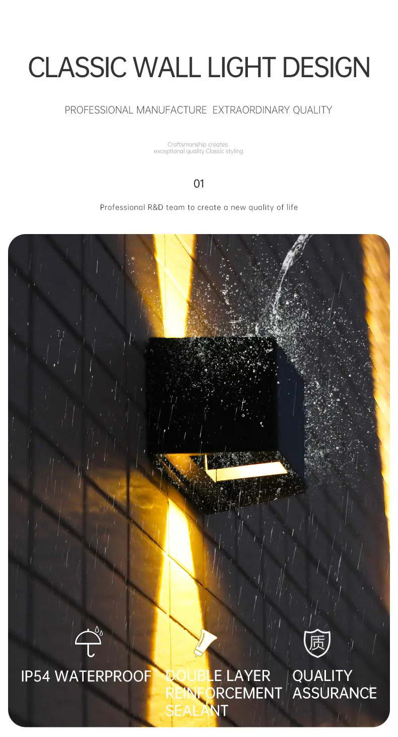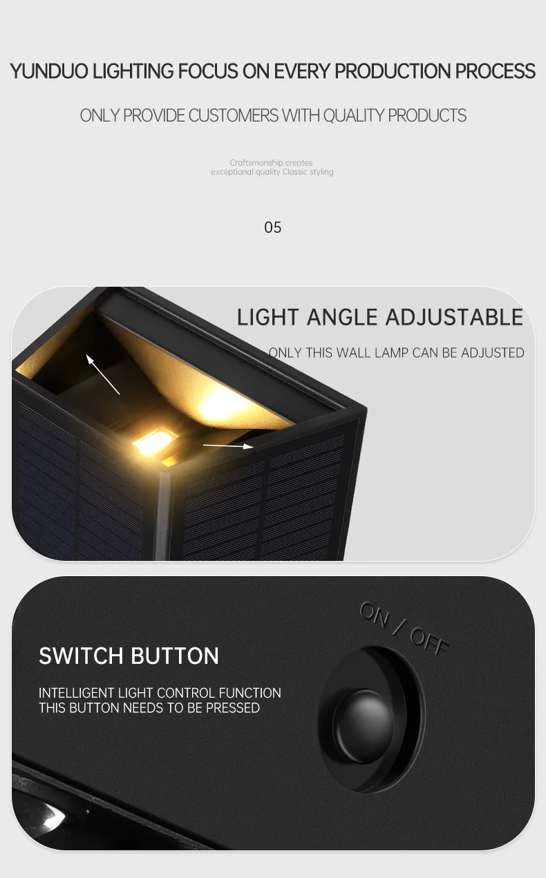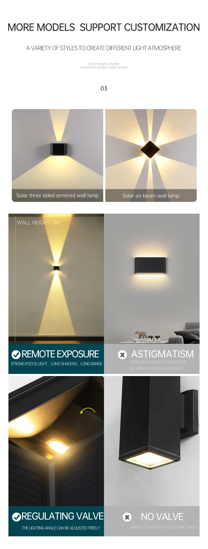 太阳能上下发光壁灯户外洗墙灯可调发光角度