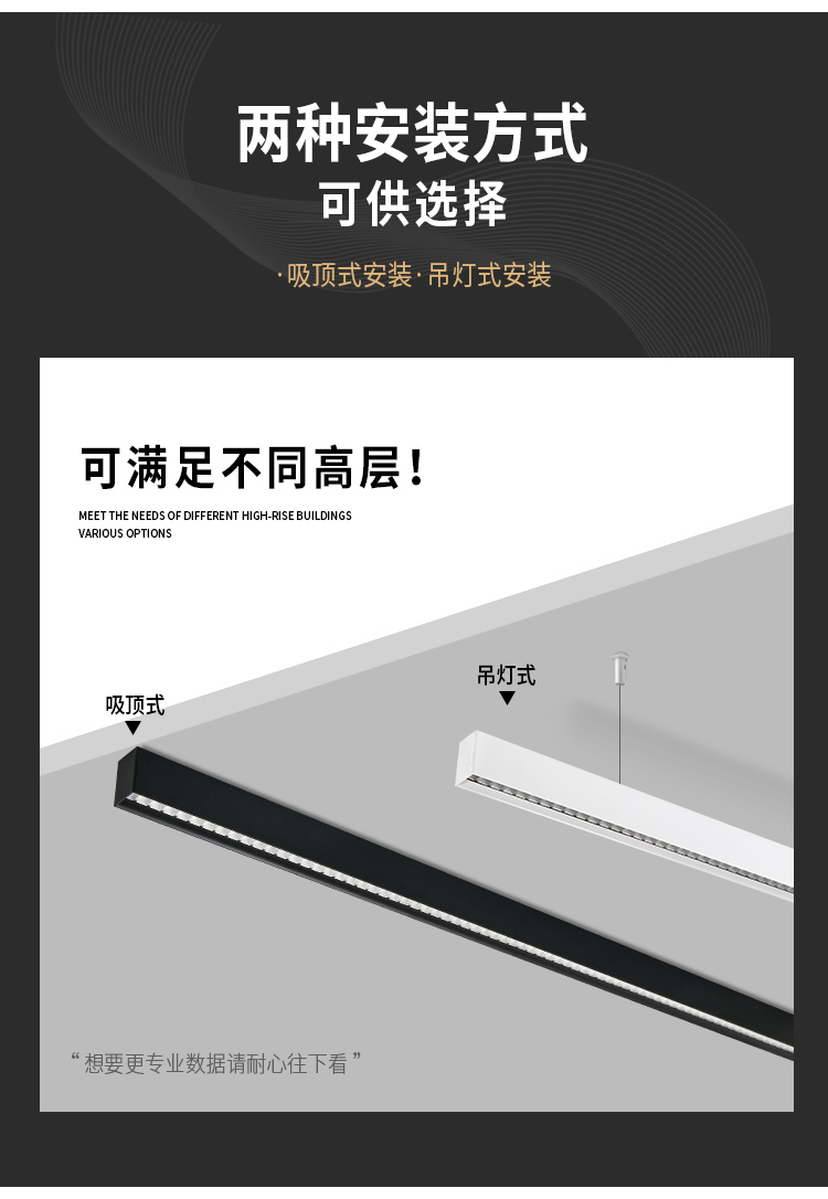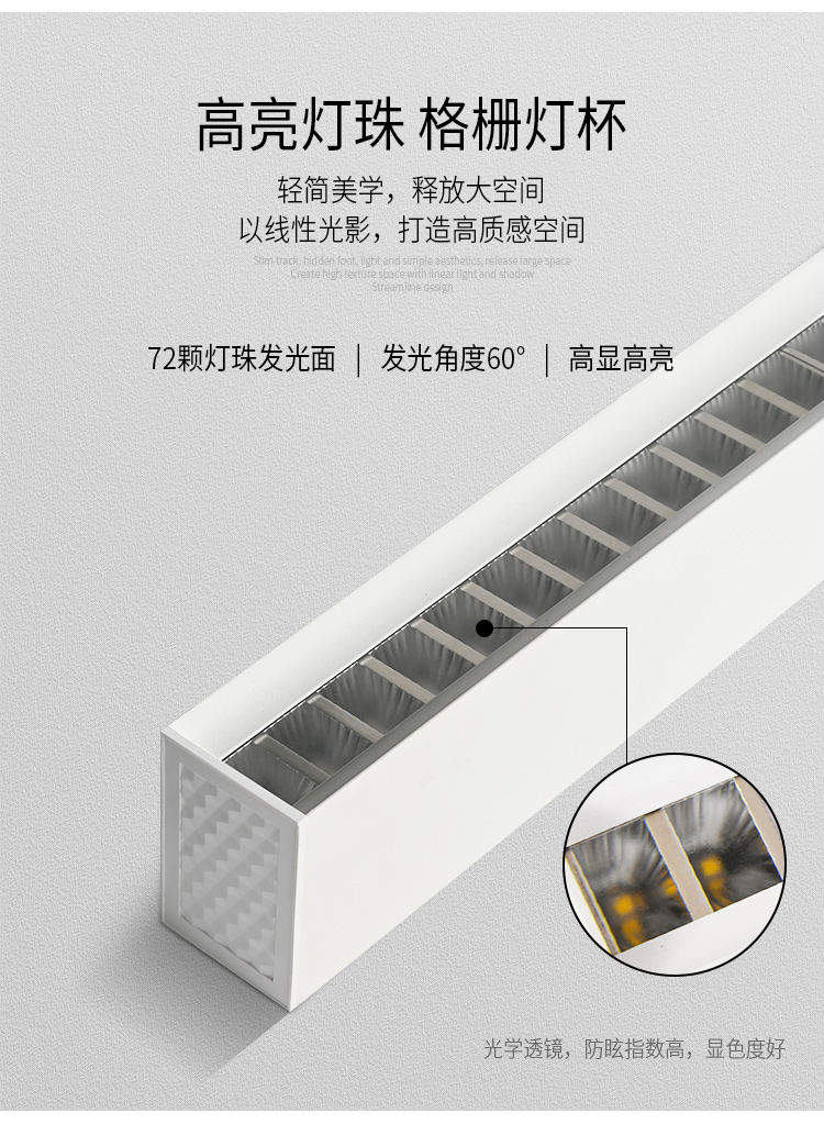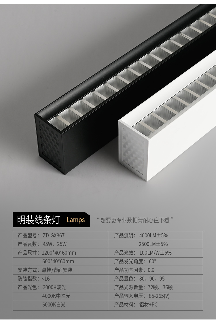 LED一体化支架长条新款光学发光角度60度悬吊条形灯