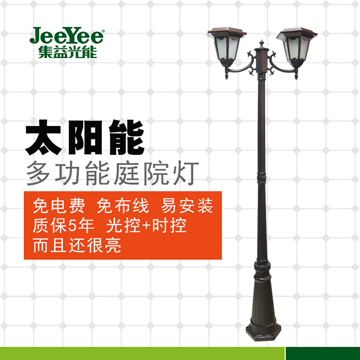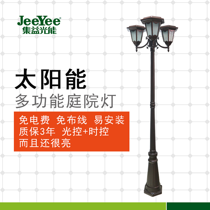 众益太阳能庭院灯 户外花园景观灯高杆三头别墅路灯防水LED花园灯